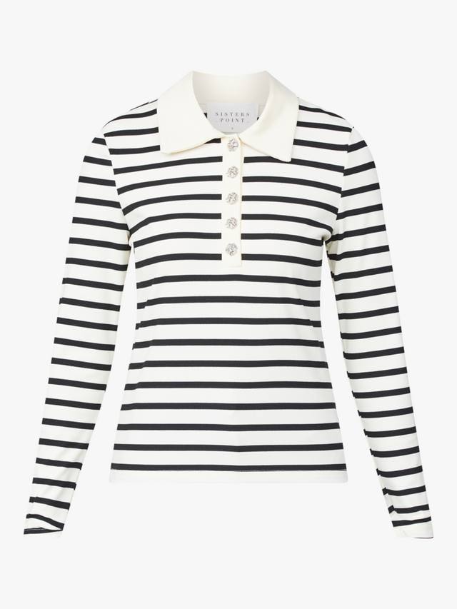 Vepi — классическая рубашка-поло с длинными рукавами и полосками. Отложной воротник и короткая застёжка на пуговицы спереди с женственными серебристыми пуговицами.