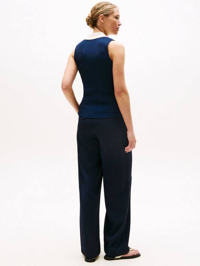 Откройте для себя непринужденную изысканность этого джемпера из смешанной вязки, скроенного по фигуре и демонстрирующего воротник-поло, заимствованный из спортивного наследия Tommy Hilfiger.