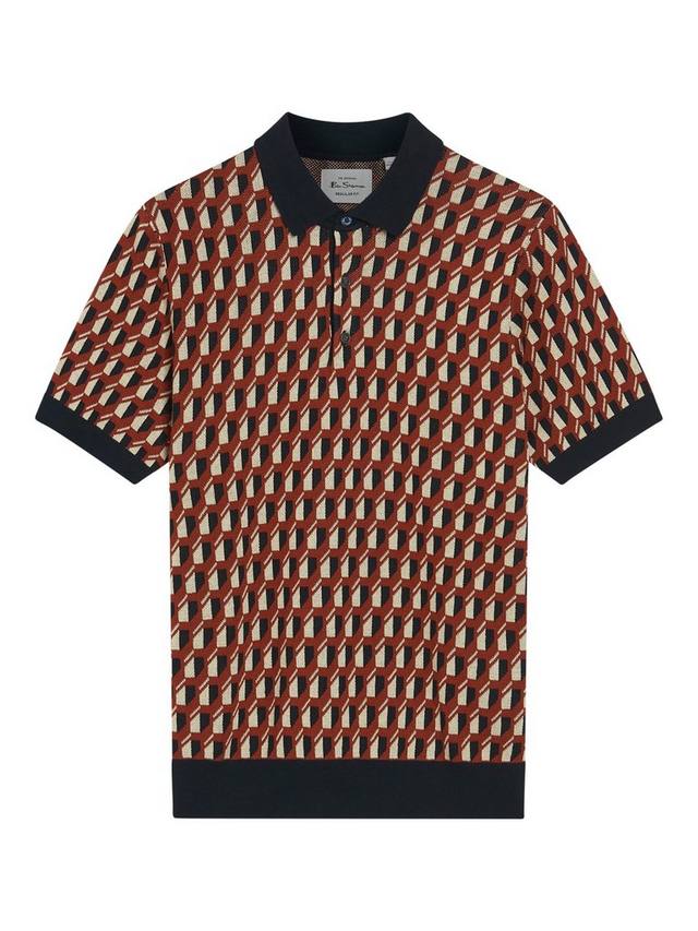 Этот трикотажный жаккардовый поло с короткими рукавами застегивается на три пуговицы и имеет фирменную тканую этикетку Ben Sherman на боковом шве.
