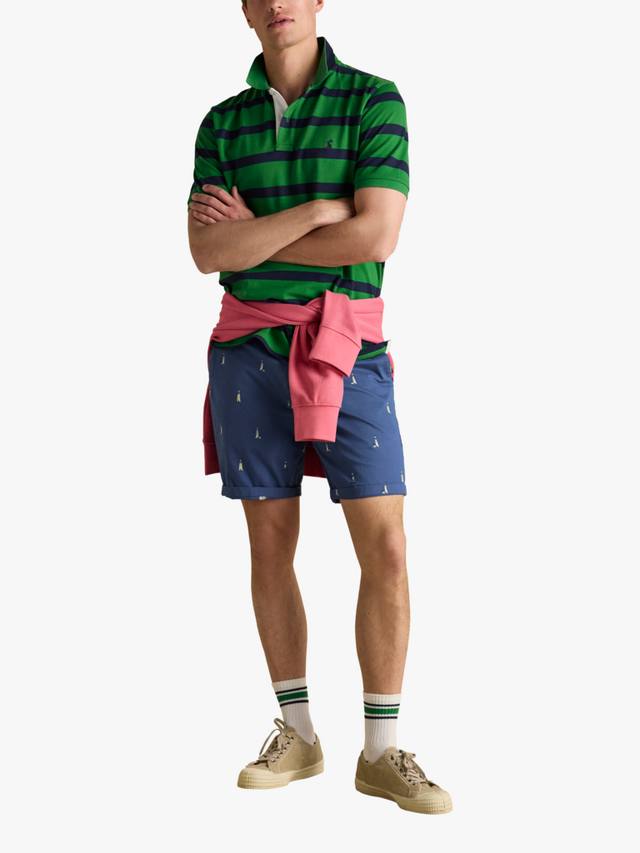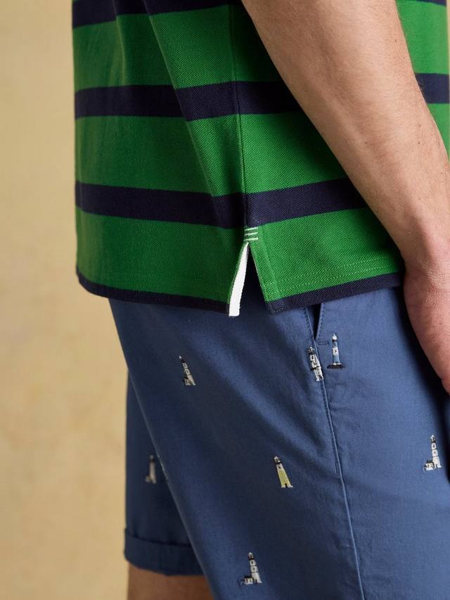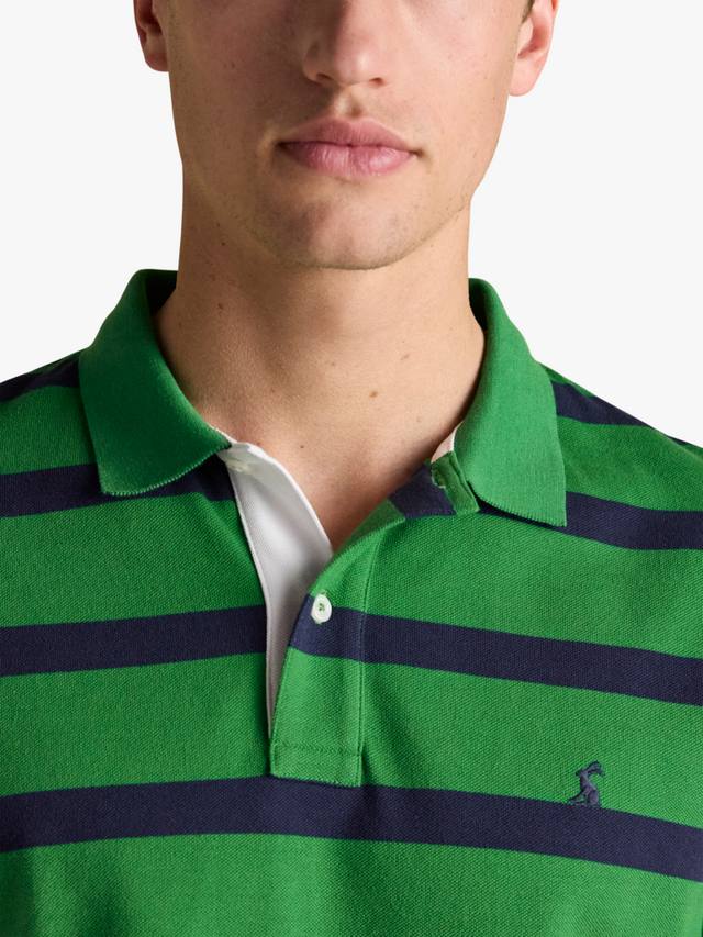Мягкий хлопок служит основой для контрастных горизонтальных полос этой рубашки поло, выполняя свою эстетическую функцию.