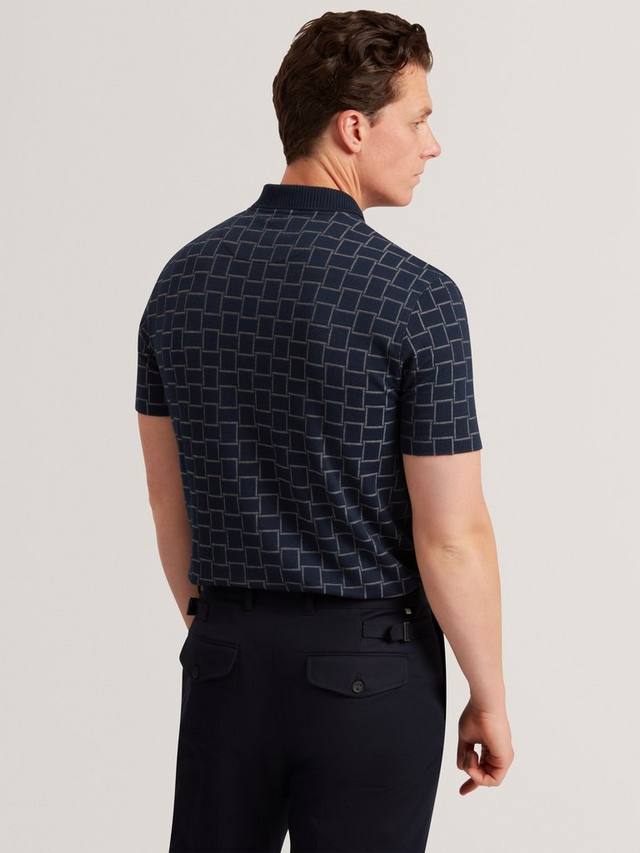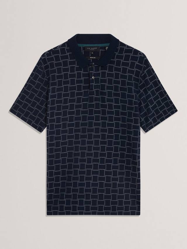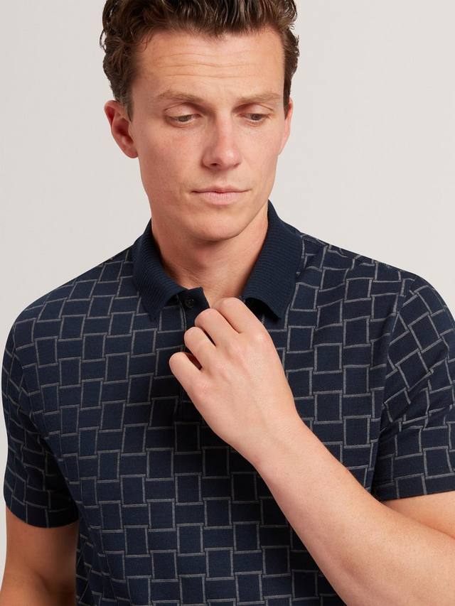 В этой рубашке-поло вам будет комфортно как от утренних встреч, так и от неторопливых вечерних посиделок. Геометрический узор добавляет элегантности, а воротник и классический крой обеспечивают непринужденную уверенность.