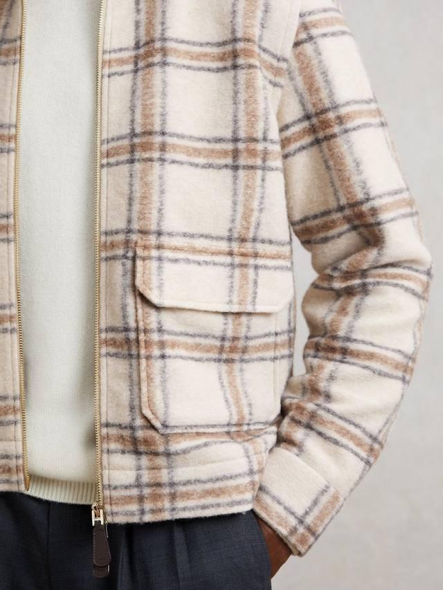 Классическая рубашка из мягкой шерстяной ткани с острым воротником, застежкой-молнией спереди и эффектным клетчатым узором. Эта модель также имеет два практичных накладных кармана.