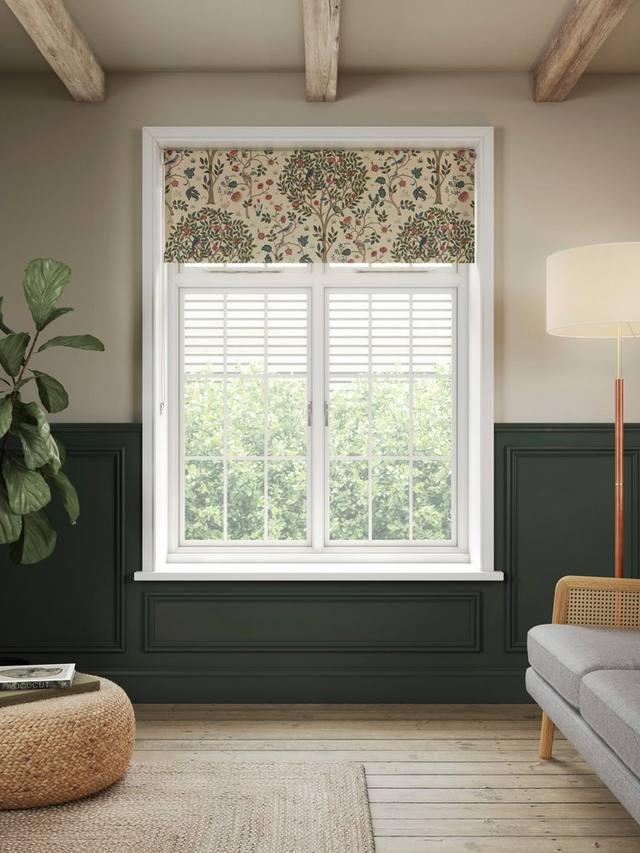 Тканевая рулонная штора с изображением нестареющего принта Уильяма Морриса Дерево Кельмскотта.