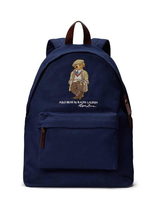 Любимый мишка Поло от Ральфа Лорена одет по сезону на этом холщовом рюкзаке с кожаной отделкой. Он оснащен кожаной верхней ручкой, двумя регулируемыми плечевыми ремнями с пряжками, двусторонней застежкой-молнией сверху и кожаными бегунками.