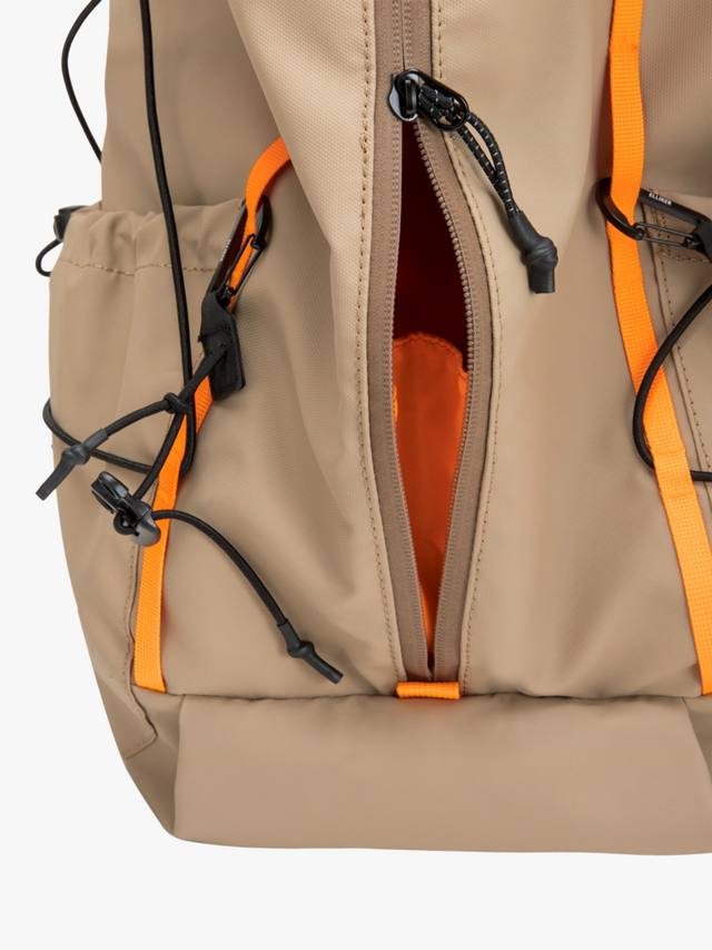Рюкзак Cautley Flap Over Backpack объёмом 23 л — это сочетание адаптивного дизайна и надёжной функциональности. Верхний клапан с водонепроницаемым полиуретановым покрытием фиксируется регулируемой системой застёжек-клипс, что позволяет рюкзаку адаптироваться к форме и объёму вашего снаряжения. Двойная молния спереди позволяет легко доставать все необходимое в дороге, а мягкий внешний карман для ноутбука подходит для устройств Apple с диагональю до 16 дюймов. Внутри просторное основное отделение на завязках вмещает второй эластичный чехол для ноутбука и карман на молнии с карабином для ключей и ремешком-цепочкой для эффективной организации.