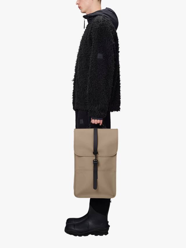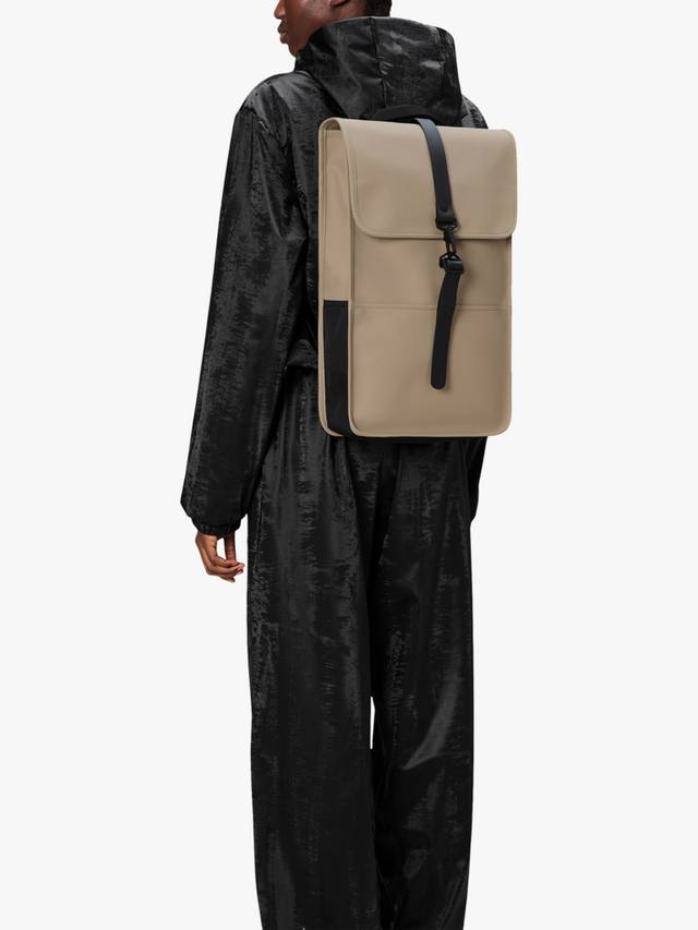 Рюкзак сшит из фирменной полиуретановой ткани Rains, разработанной для прочности, долговечности и гладкости.
