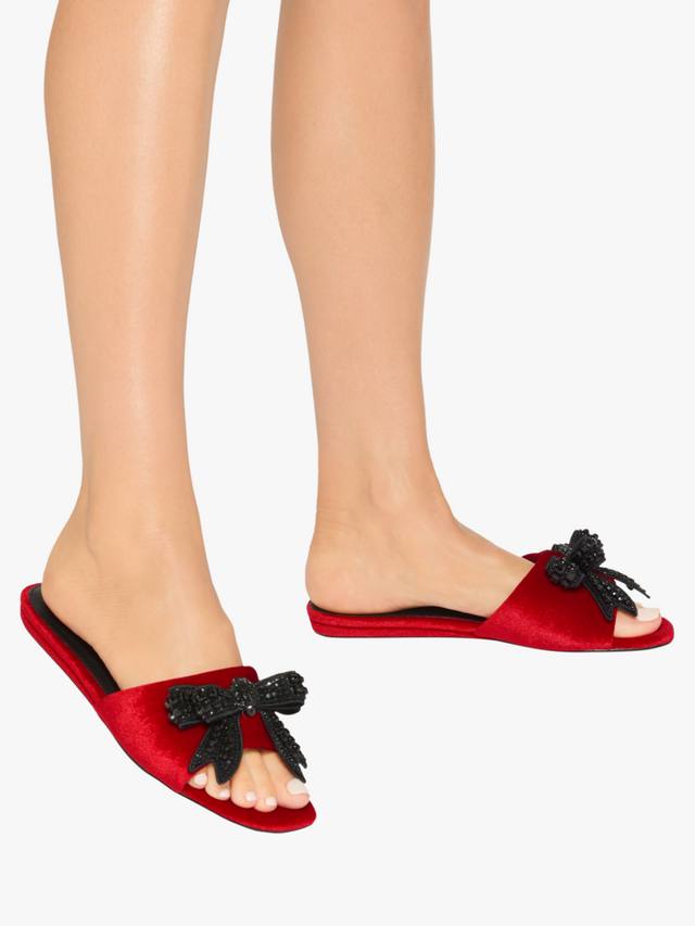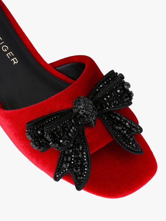 Бархатные шлепанцы с бантом, украшенным орлом, созданы для комфорта и стиля. Открытый квадратный носок и плоская подошва сделают вашу повседневную жизнь легкой и подходящей для любого повседневного приключения.