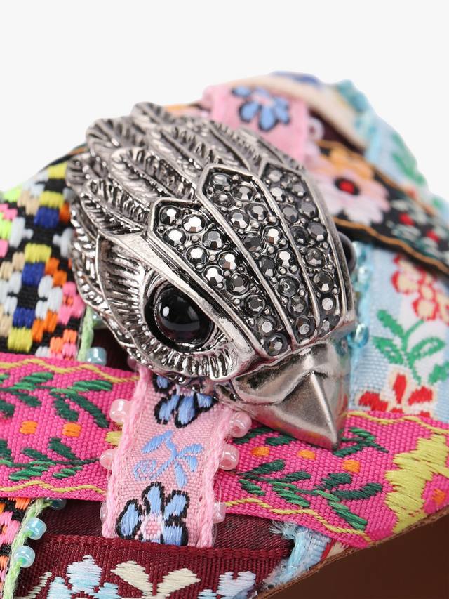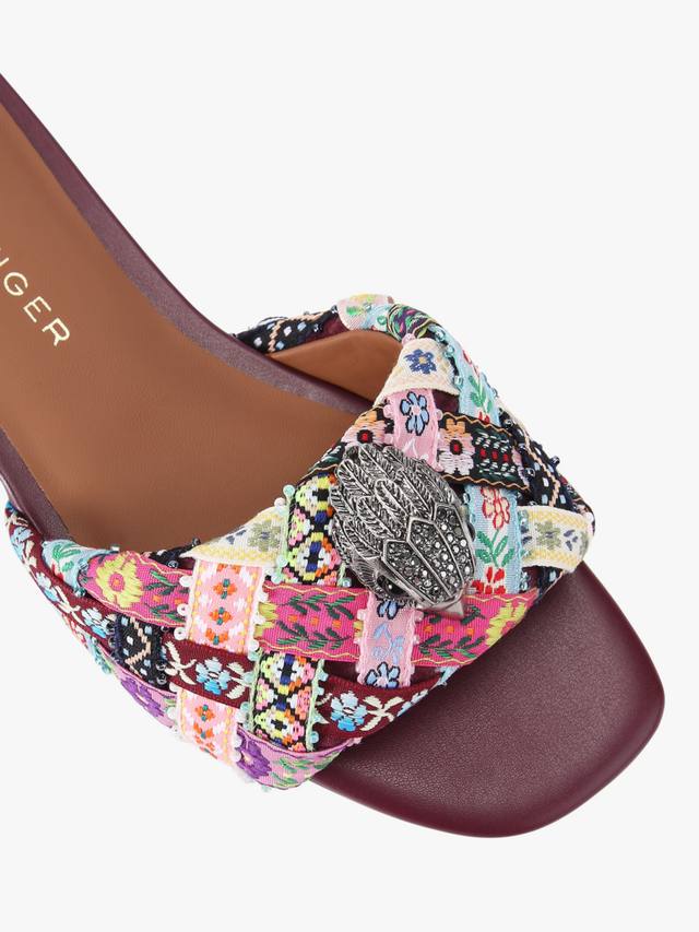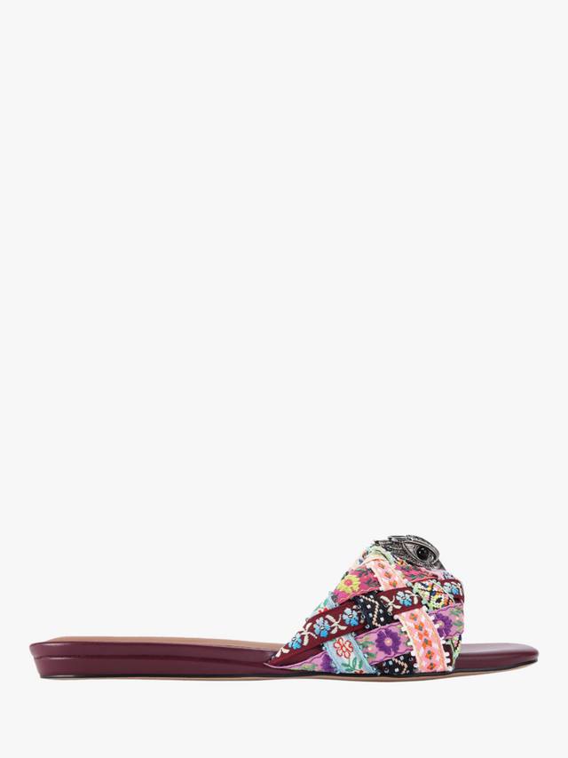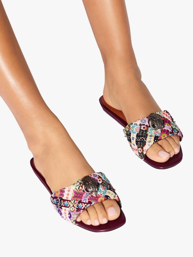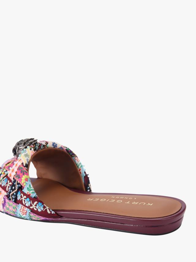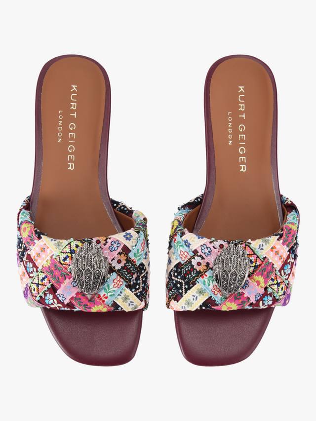 Пара плоских сандалий от Kurt Geiger London. Их абстрактный пэчворк-узор и удобная конструкция с культовым орлом обеспечат вам комфорт на весь день.