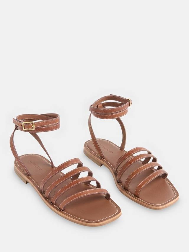 Внимание к деталям — вот что главное в этих сандалиях с ремешками. Это обувь для теплой погоды с золотистой фурнитурой и контрастной строчкой на высококачественной кожаной основе.
