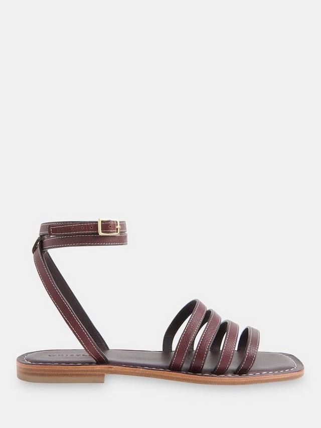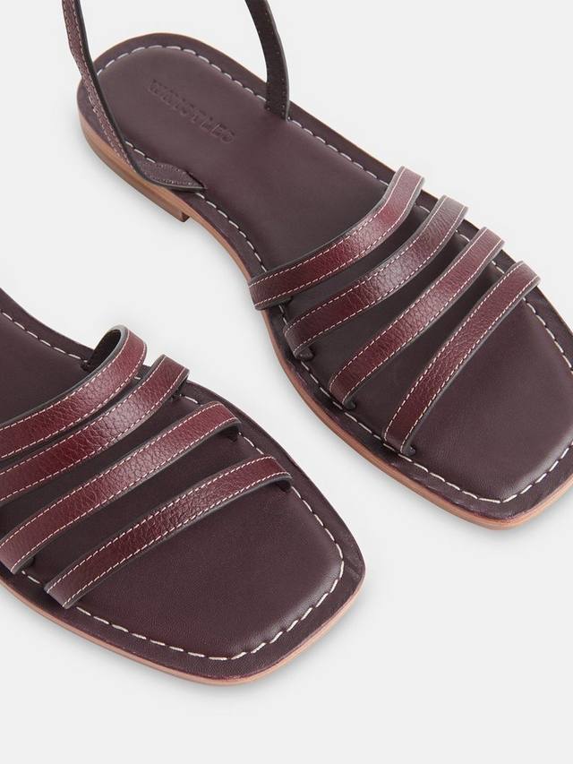 Внимание к деталям — вот что главное в этих сандалиях с ремешками. Это обувь для теплой погоды с золотистой фурнитурой и контрастной строчкой на высококачественной кожаной основе.