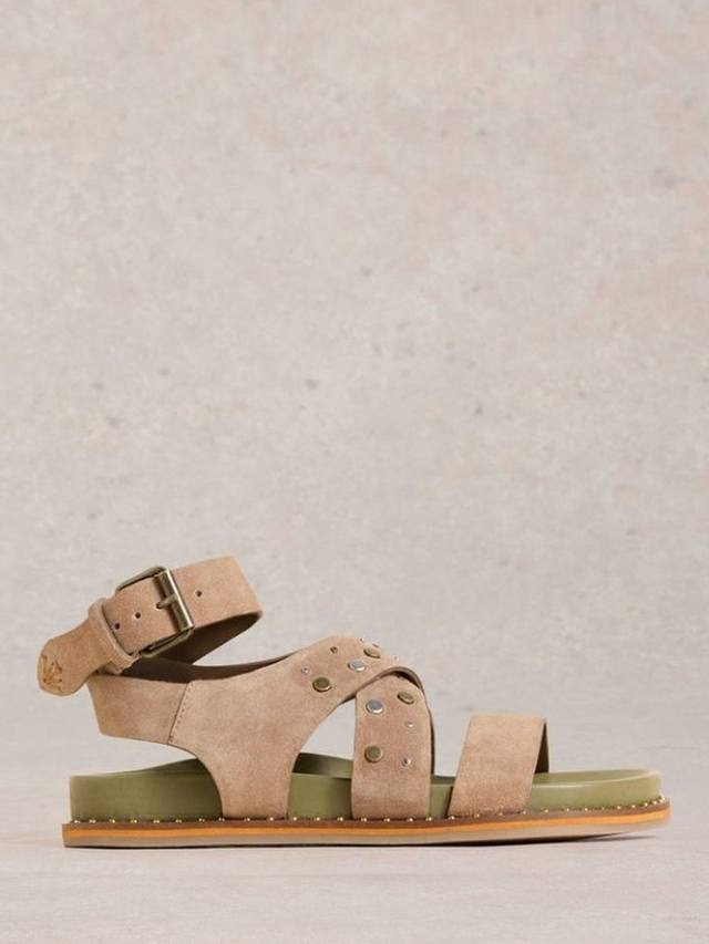 Эти гладиаторские сандалии с анималистичным принтом от White Stuff изготовлены из замши с формованной стелькой и ремешком на пряжке на щиколотке.