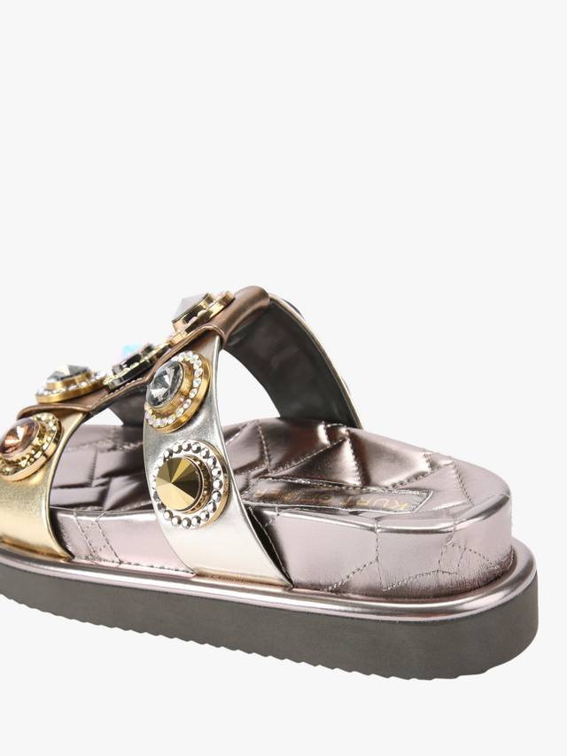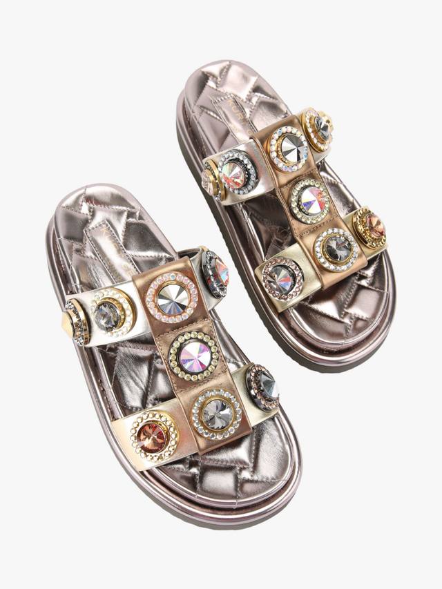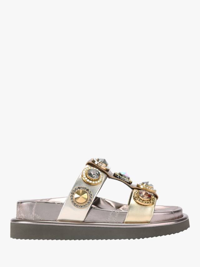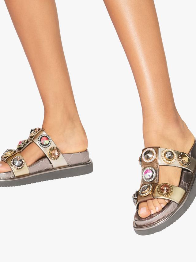 Эти босоножки Orson Crystal от Kurt Geiger London представлены в металлизированной бронзовой коже с сетчатыми ремешками. Ремешок украшен крупными дымчатыми кристаллами.