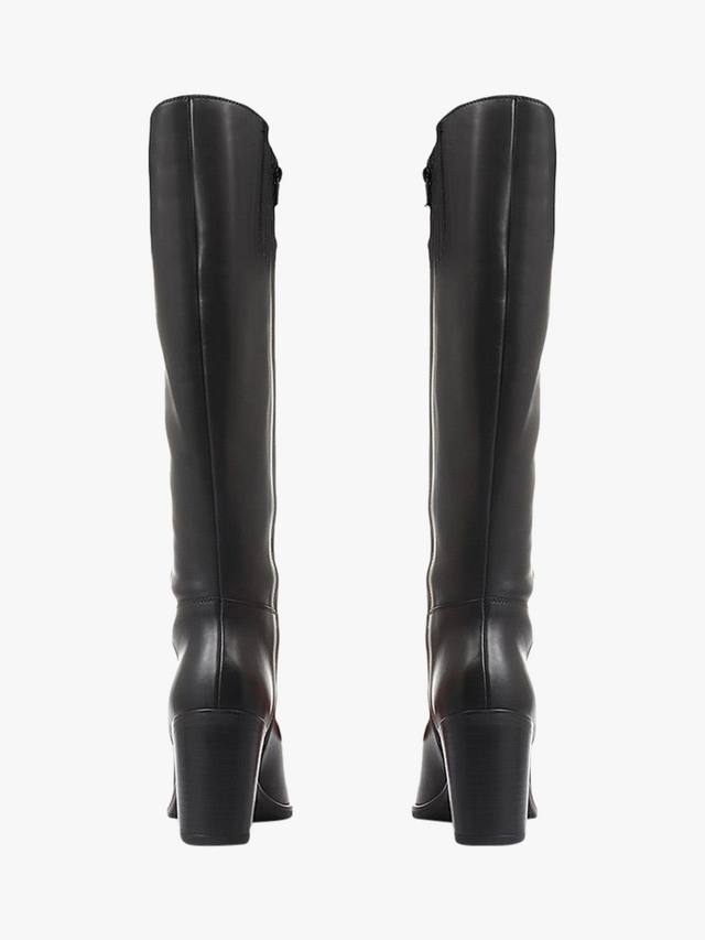 Cagliari — классические высокие сапоги до колена с широкой голенищем. Они изготовлены из гладкой полированной кожи и имеют мягкий заостренный носок. Дополнены каблуком средней высоты и застежкой-молнией по всей длине.