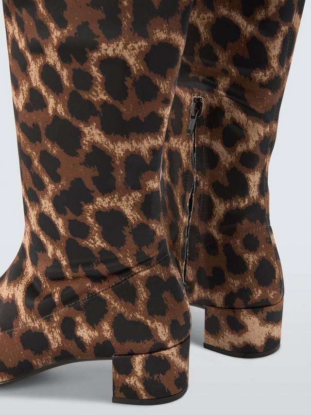Изготовленная из эластичного атласа с эффектным леопардовым принтом, эта модель идеально подходит для ношения под юбками миди или джинсами. Блочный каблук придает образу устойчивость и структуру, обеспечивая идеальный баланс между комфортом и выразительностью.