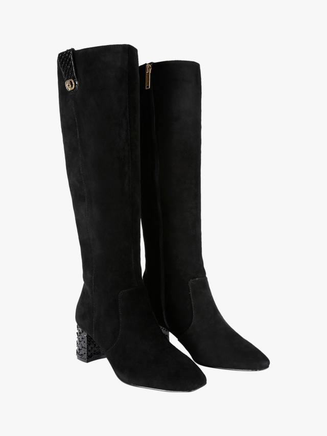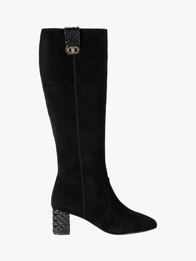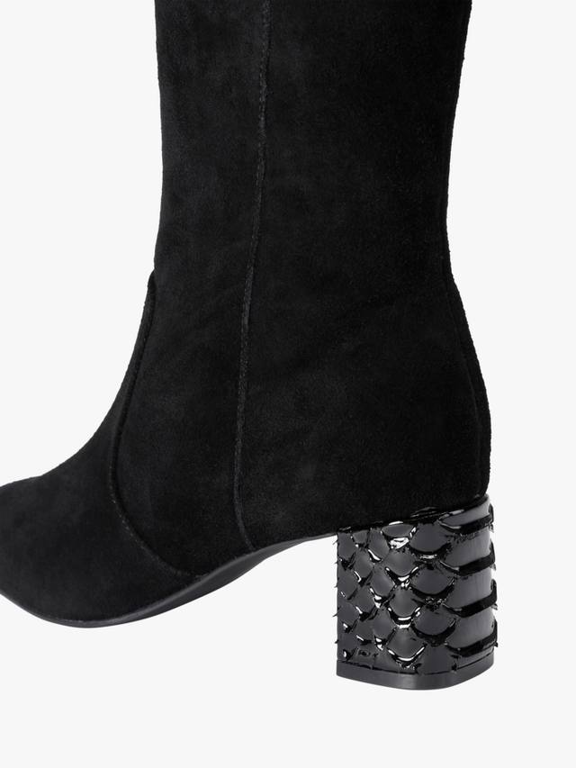 Высокие сапоги от Kurt Geiger London с декорированным блочным каблуком и изящным миндалевидным носком. Выполненные из гладкой замши, эти смелые силуэты подойдут для любого повседневного образа, обеспечивая вам комфорт и индивидуальность.