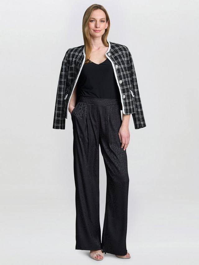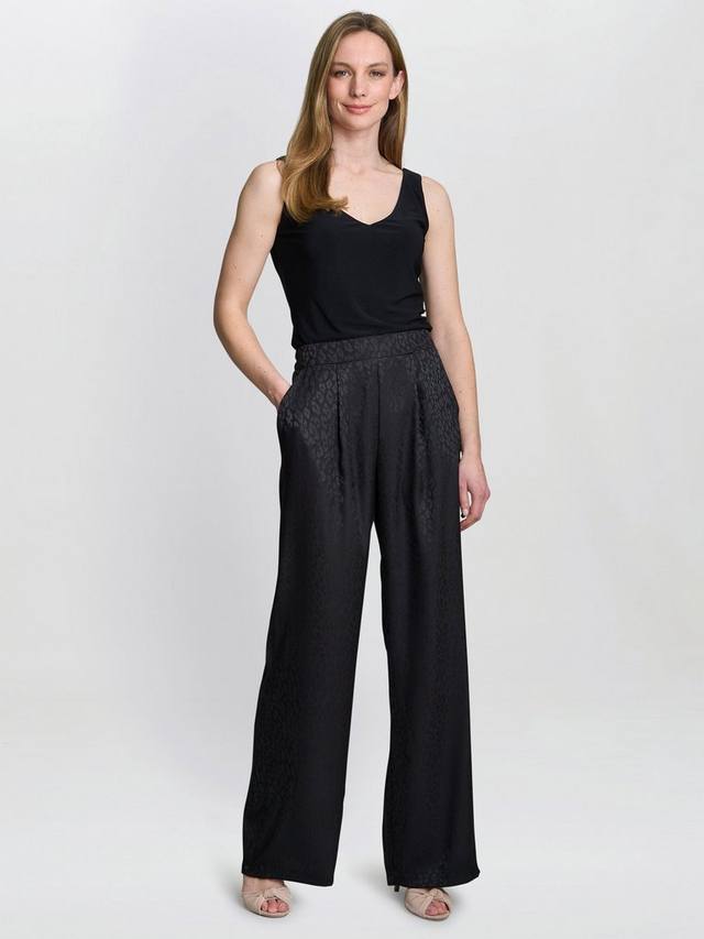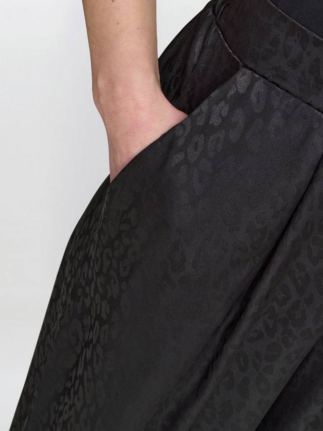 Элегантные атласные брюки Sabrina с широкими штанинами черного цвета свободного, но элегантного кроя. Эластичный пояс дополнен изящным анималистичным принтом, который добавляет женственности.