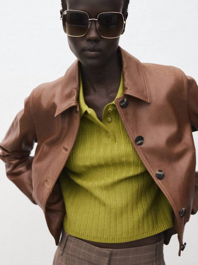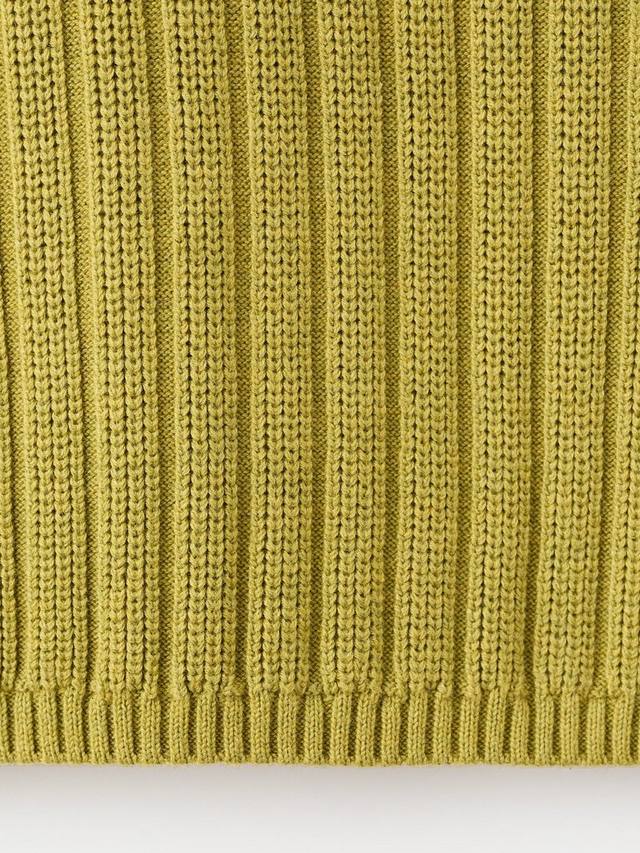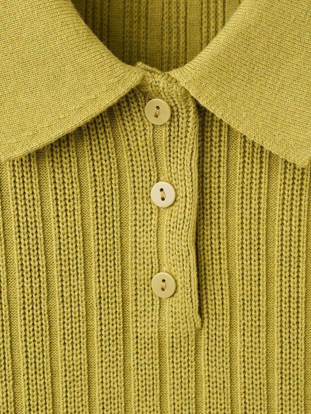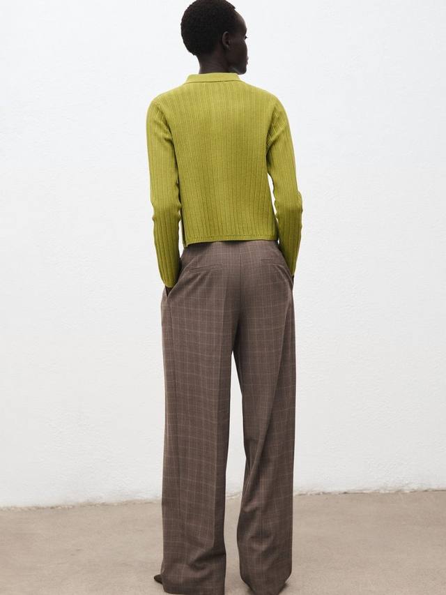 Эта тонкая ребристая вязка с классическим воротником, длинными рукавами и элегантной застежкой на пуговицы. Благодаря лёгкости и комфорту вы будете чувствовать себя комфортно и стильно, независимо от того, надеваете ли вы многослойную одежду для работы или дополняете свой образ для отдыха.