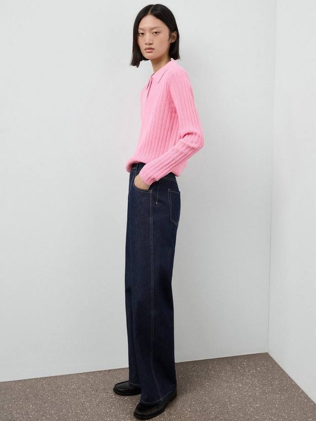 Эта тонкая ребристая вязка с классическим воротником, длинными рукавами и элегантной застежкой на пуговицы. Благодаря лёгкости и комфорту вы будете чувствовать себя комфортно и стильно, независимо от того, надеваете ли вы многослойную одежду для работы или дополняете свой образ для отдыха.