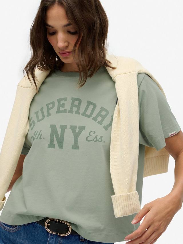 Свободная футболка Athletic Essentials из фирменной коллекции премиум-класса Superdry — абсолютный незаменимый предмет гардероба. Яркие цвета и слегка контрастный текст на груди в сочетании со свободным кроем и укороченной длиной создают великолепную, универсальную и стильную футболку.