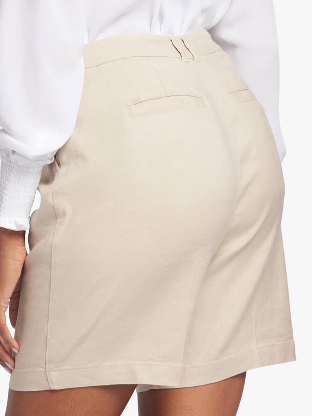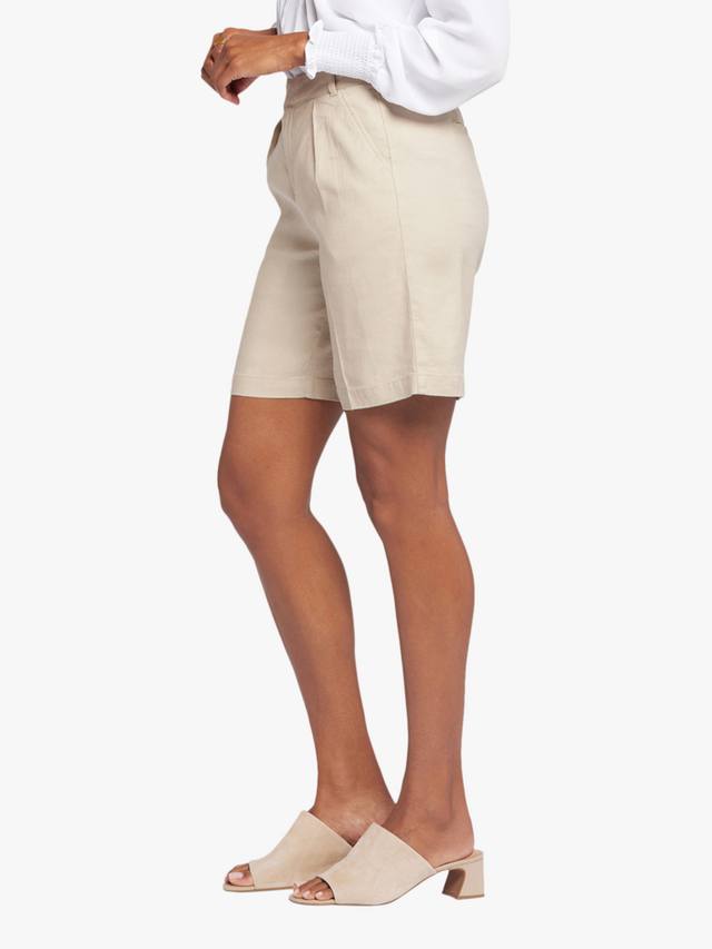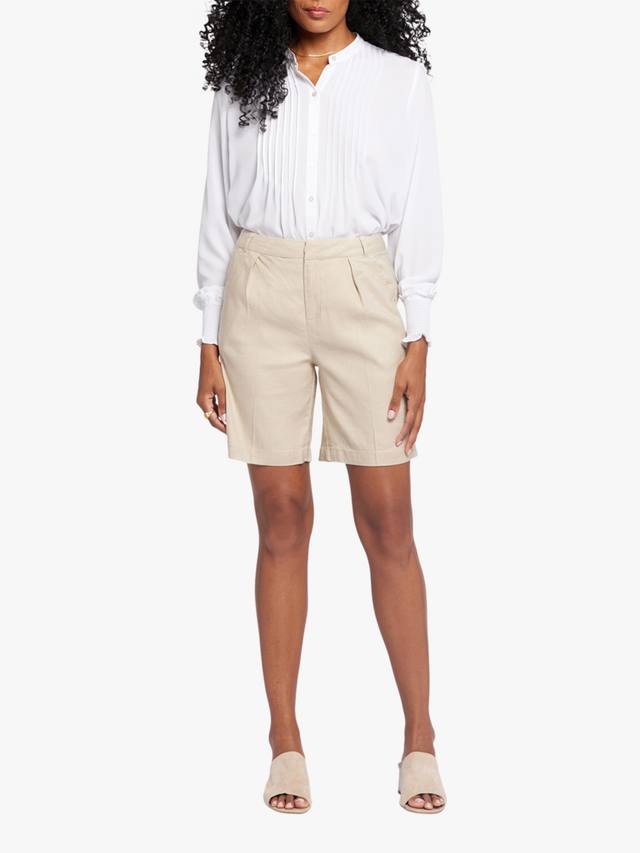 Ощутите максимальный комфорт и стиль в свободных шортах NYDJ из эластичного льна. Эти лёгкие шорты элегантно сидят на талии, создавая эффектный приталенный вид благодаря вытачкам. Модель дополнена прорезными карманами спереди, прорезными карманами сзади и застёжкой на молнию и пуговицу.