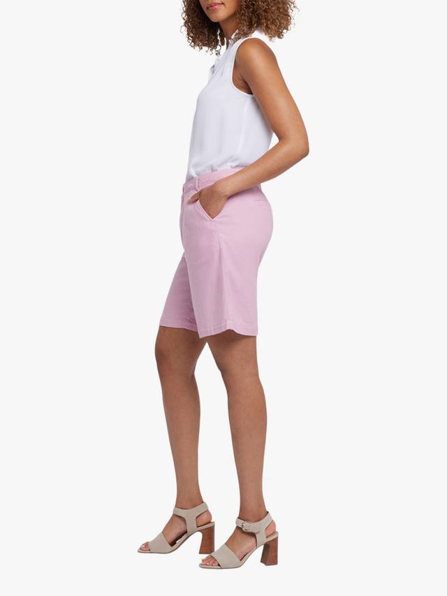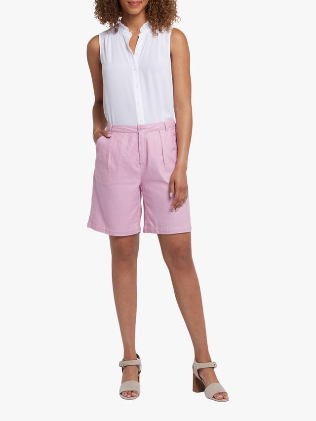 Ощутите максимальный комфорт и стиль в свободных шортах NYDJ из эластичного льна. Эти лёгкие шорты элегантно сидят на талии, создавая эффектный приталенный вид благодаря вытачкам. Модель дополнена прорезными карманами спереди, прорезными карманами сзади и застёжкой на молнию и пуговицу.