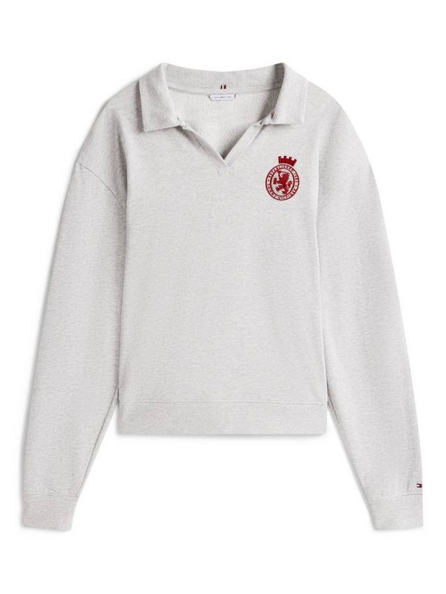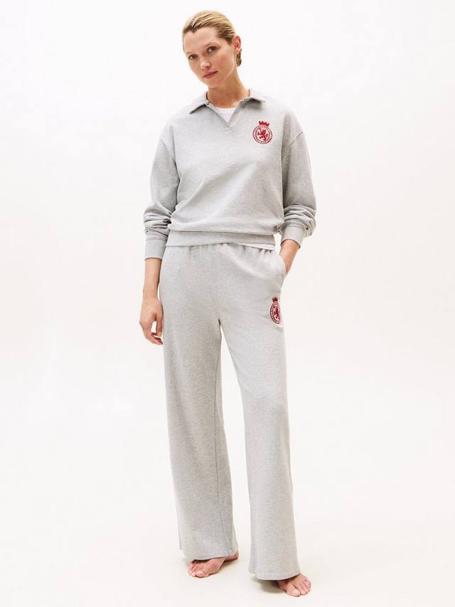 Добавьте непринужденный вид в свою коллекцию домашней одежды с этим свободным джемпером с вышитым на груди гербом TH в университетском стиле. Сшит из смесового хлопкового трикотажа, с воротником-поло, открытой планкой, трикотажным воротником, манжетами и подолом в рубчик. Свободный крой и спущенные плечи.
