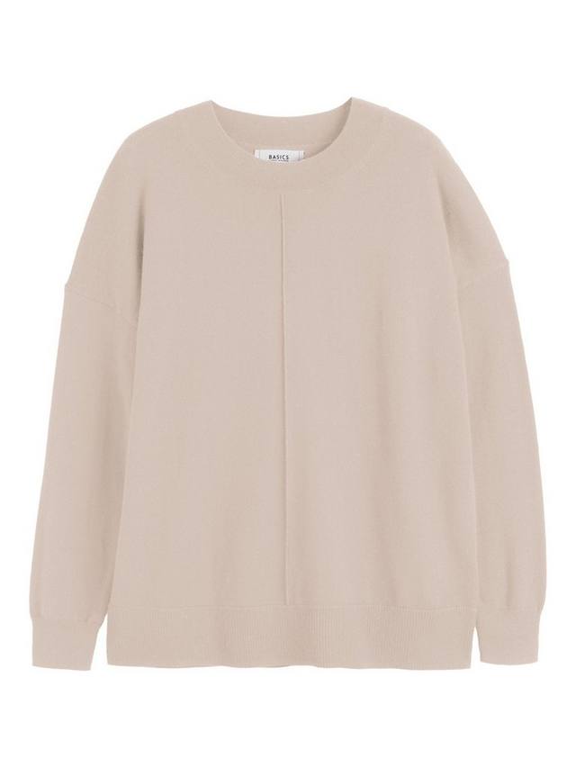 Этот свитер свободного кроя излучает непринужденную привлекательность. Он связан тонкой вязкой из смеси шерсти и кашемира и украшен рельефным швом по центру переда.