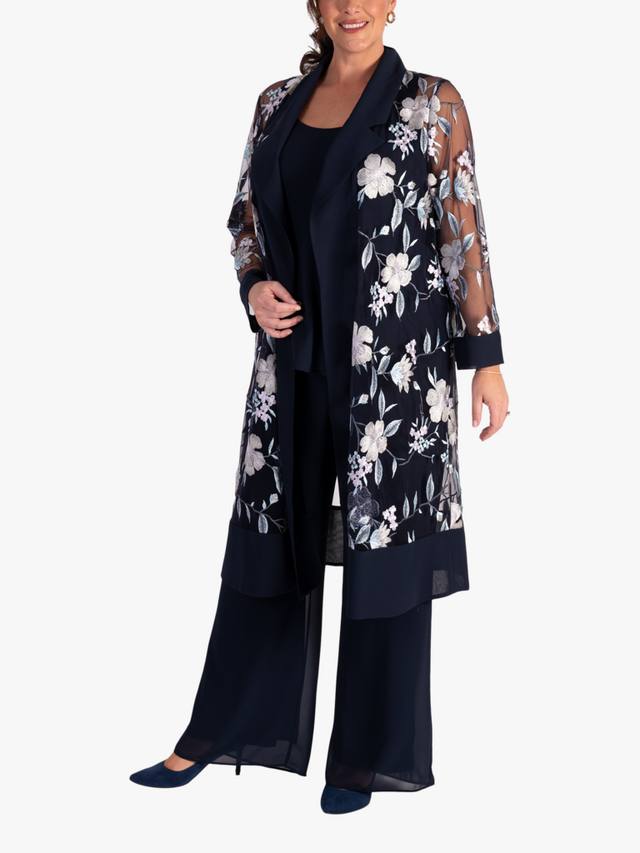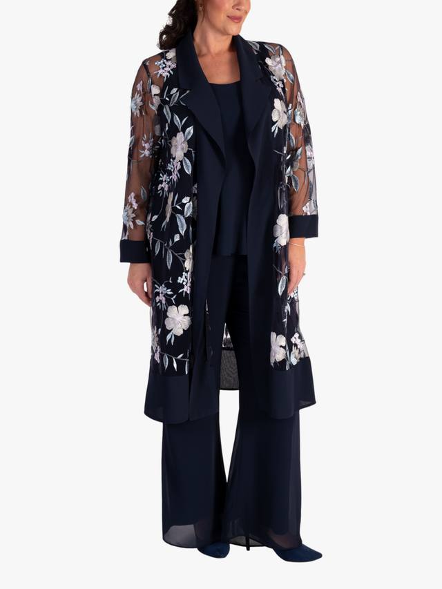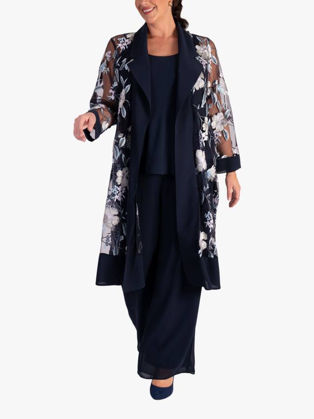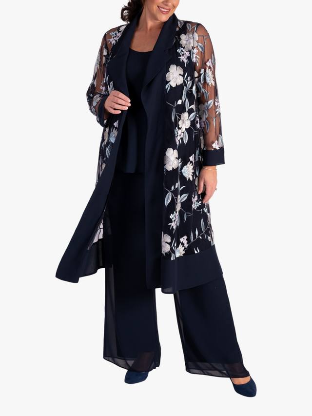 Этот суперзвездный экземпляр от Chesca — простой способ сделать свой образ более изысканным: он имеет универсальный подол длиной до колена, обеспечивающий практичность. Элегантное пальто из сетчатой ткани с цветочной вышивкой в пастельных тонах, аккуратно обрамленное шалевым вырезом из шифона, дополнено шифоновой отделкой по подолу. Сочетайте с палаццо или платьем с косым кроем из этой коллекции, добавьте немного украшений, и у вас получится потрясающий наряд для матери жениха/невесты, гостя на свадьбе или любом другом особом мероприятии.