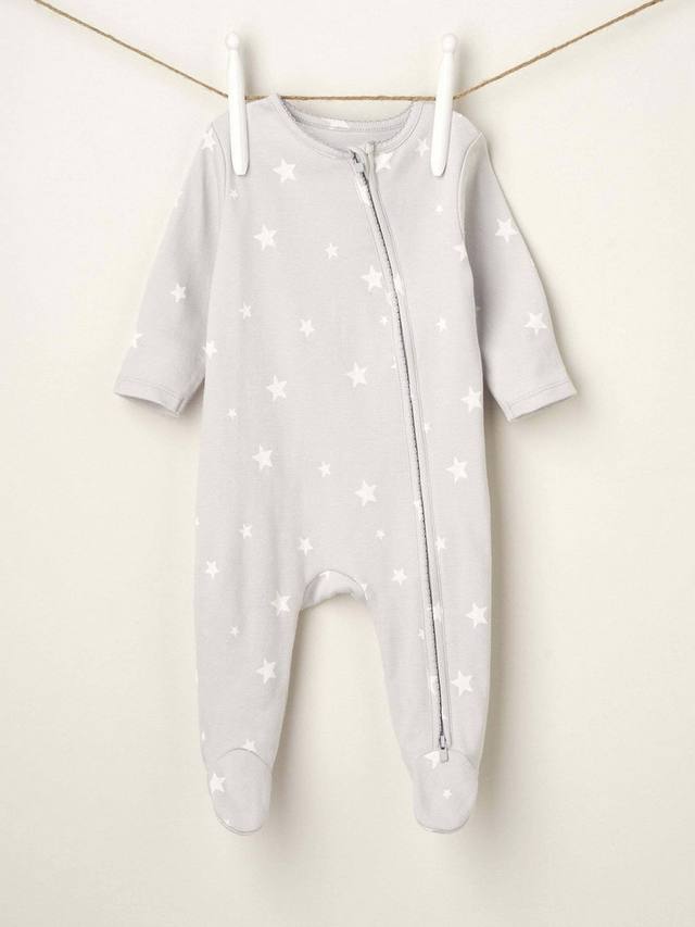 Изготовлены из невероятно мягкого хлопка, имеют встроенные ножки и без воротника. Удобная двусторонняя молния позволяет легко менять даже самые капризные подгузники. Пополните свой первый гардероб этими пижамами, которые удобно носить весь день, и которые остаются мягкими после каждой стирки. Являясь частью коллекции Star Baby, комбинезон Star Print Baby Grow призван вдохновлять на самые сладкие сны.