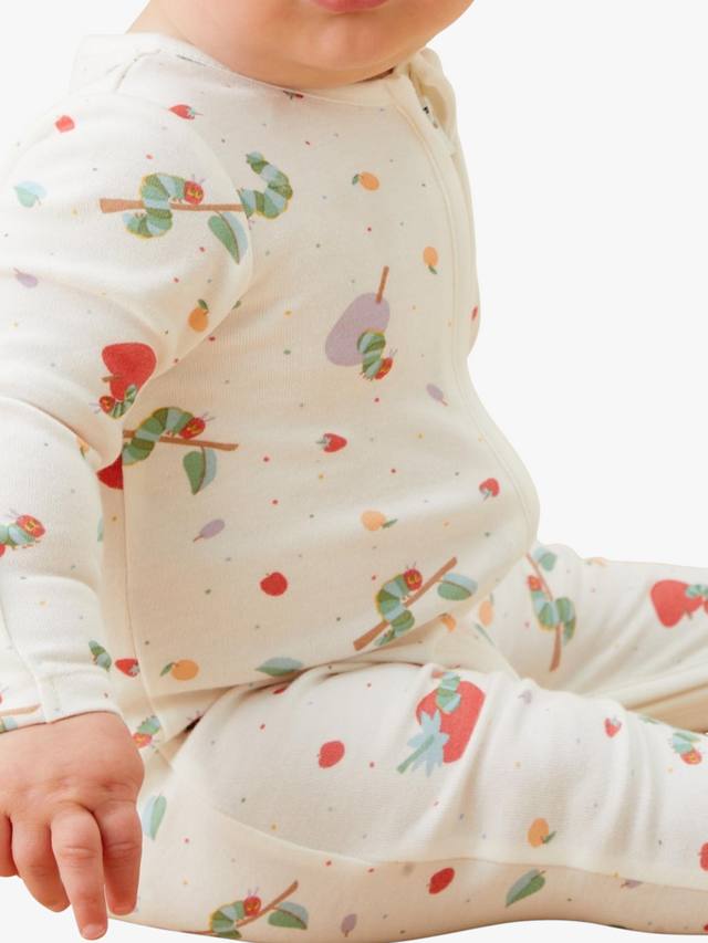 При лунном свете малыши будут крепко спать в детском пижамном комбинезоне Очень голодная гусеница. С удобной двухсторонней молнией спереди, благодаря которой переодевание и переодевание становятся лёгкими и лёгкими. Пижамный комбинезон изготовлен из фирменной ткани, приятной на ощупь и дышащей, что обеспечивает комфорт.