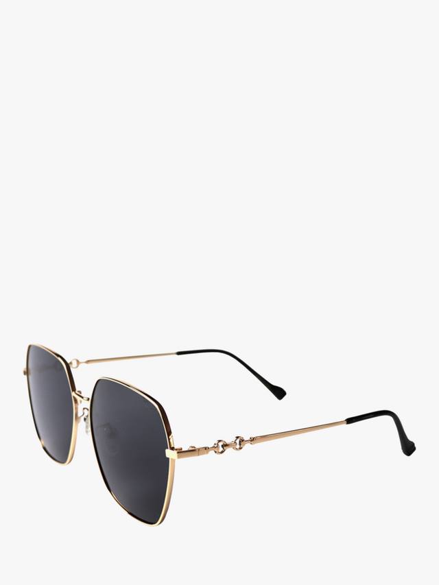 Эти солнцезащитные очки неправильной формы имеют оправу из золотистого металла с классическими черными линзами. Поставляются в фирменной коробке с тканевым мешочком с принтом и завязкой, а также в комплекте с полировочной салфеткой из микрофибры.
