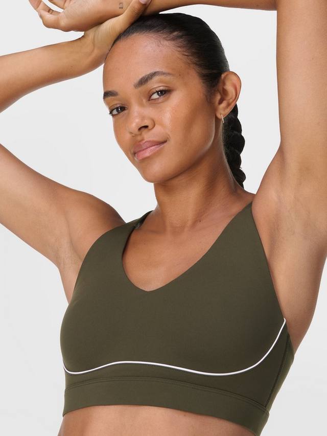 Новый технологичный бюстгальтер Power Bra для тренировок средней интенсивности. Изготовлен из эластичной, влагоотводящей ткани Power. Спроектирован с несъемными формованными чашками, мягкими, как зефир, для воздухопроницаемости и комфорта, с женственными швами. Регулируемые лямки с мягкой подкладкой, перекрещивающиеся. Застежка на крючок и петли сзади с вырезом-замочной скважиной.