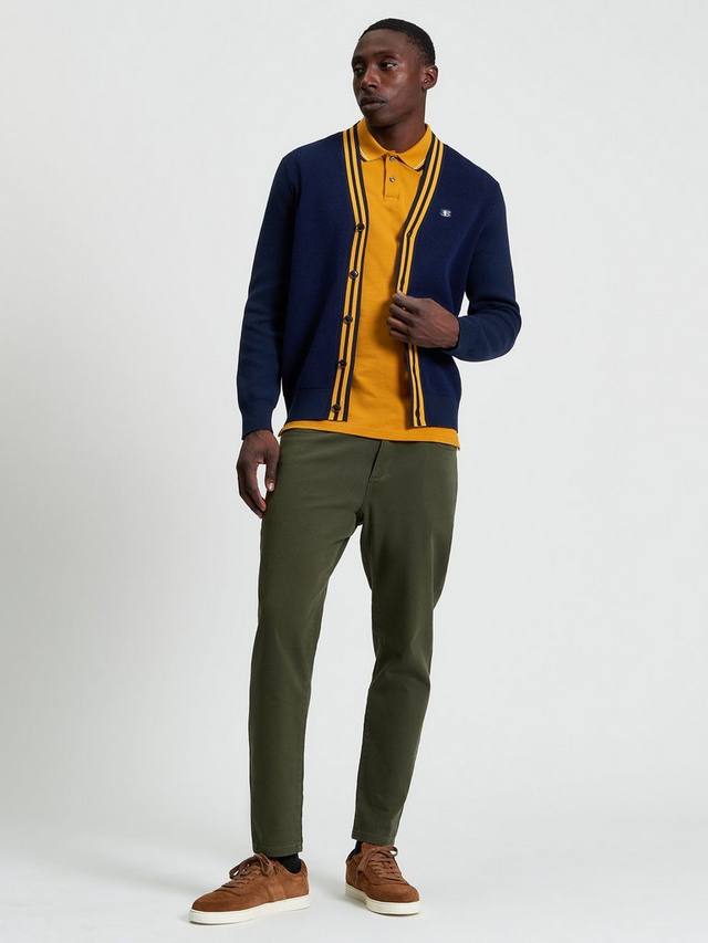 Этот длинный вязаный спортивный кардиган свободного кроя с фактурными передними панелями и фирменной тканой этикеткой Ben Sherman на боковом шве.