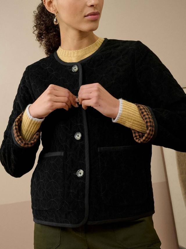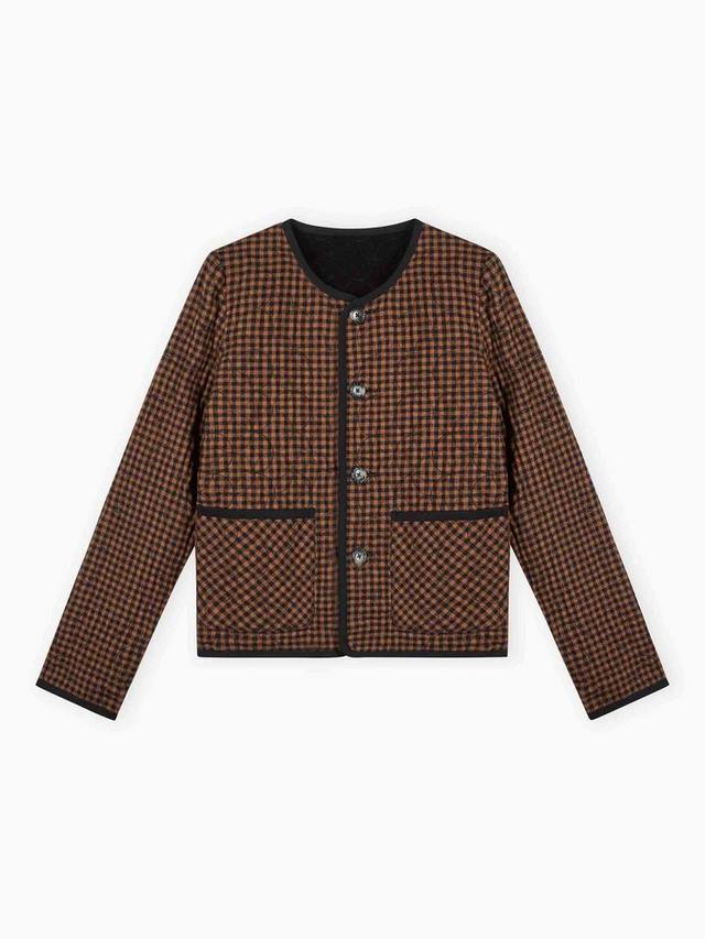 Эта хлопковая куртка украшена сезонным рисунком в клетку гингем с круговой простежкой, накладными карманами и обработанными краями. Более того, он полностью двусторонний, идеально подходит для дней, когда вам нужен слой из плотного игольного шнура.
