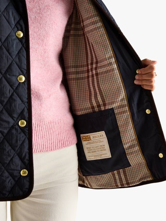 В этом сезоне стеганое пальто Quinn станет главным предметом вашего гардероба. Созданное для того, чтобы согреть вас весной, это идеальный лёгкий слой. Плоский утеплитель обеспечивает тепло, а такие отличительные детали, как ромбовидная стёжка, вельветовый воротник и окантовка, придают пальто классический деревенский вид. Внутренняя часть украшена клетчатым узором, разработанным Joules, который добавляет контрастности при закатанных манжетах. Более светлая цветовая палитра символизирует (несколько) лучшую погоду.