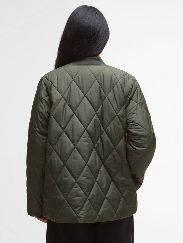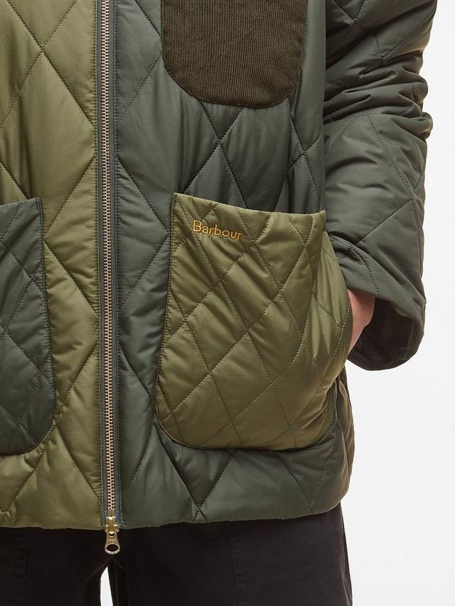 Идеальное сочетание непринужденного спортивного стиля и вневременного стиля: стеганая куртка-бомбер Barbour Leonie — это современный стиль. Эта удлиненная модель в стиле бомбера с ткаными манжетами и воротником, карманами в стиле Лиддесдейла и контрастными стегаными деталями сочетает в себе фирменные детали и современный силуэт.