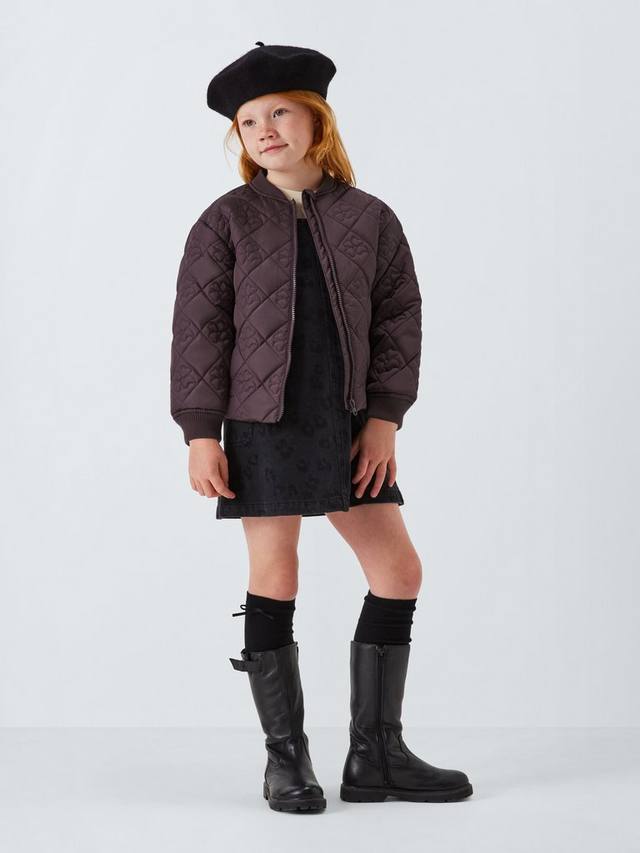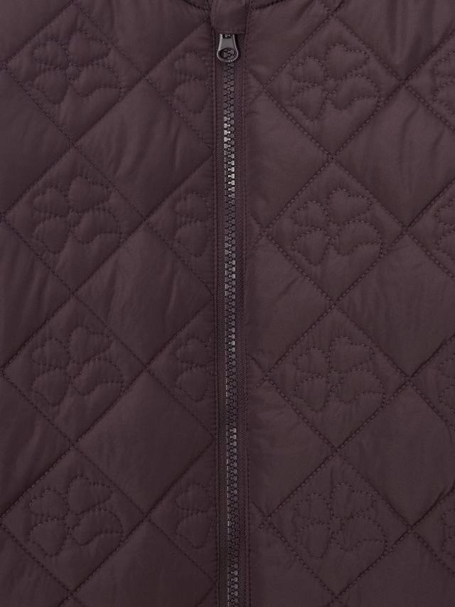 Стеганая версия винтажной куртки-бомбера с цветочным принтом. С крючком для одежды и защитой подбородка на молнии.
