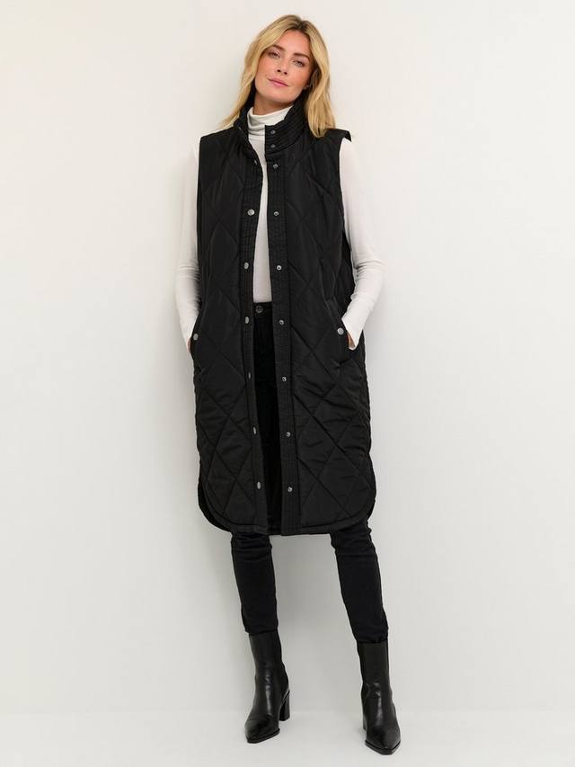 Для тех, кто не в настроении, выбирайте Meria от KAFFE. Проверенная временем стеганая текстура, удлинённый крой обеспечивает тепло, а боковые карманы добавляют практичности.