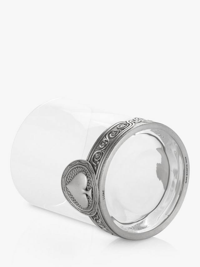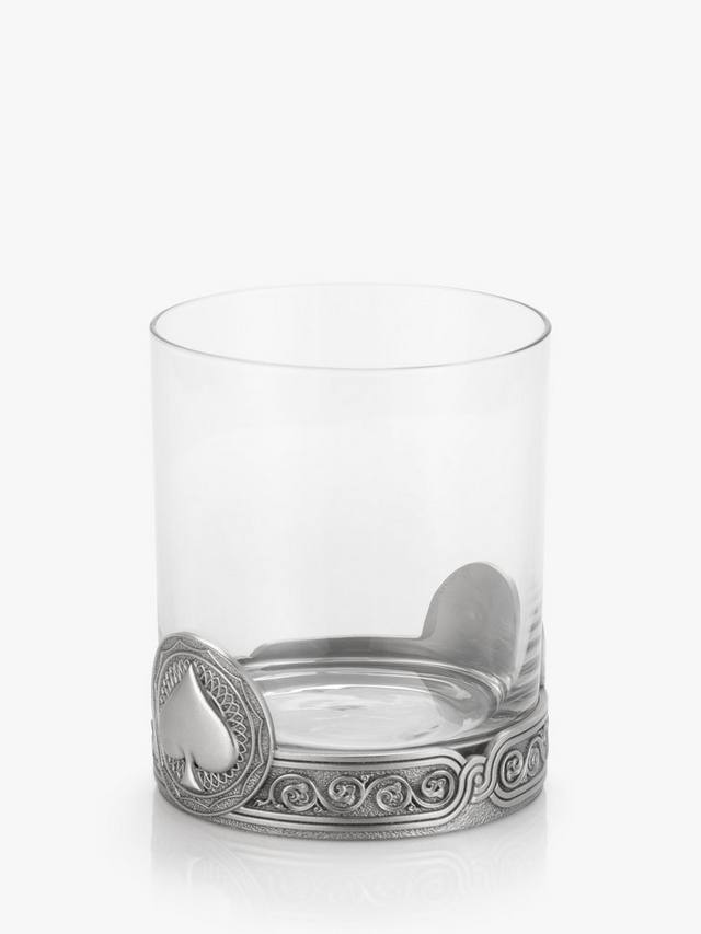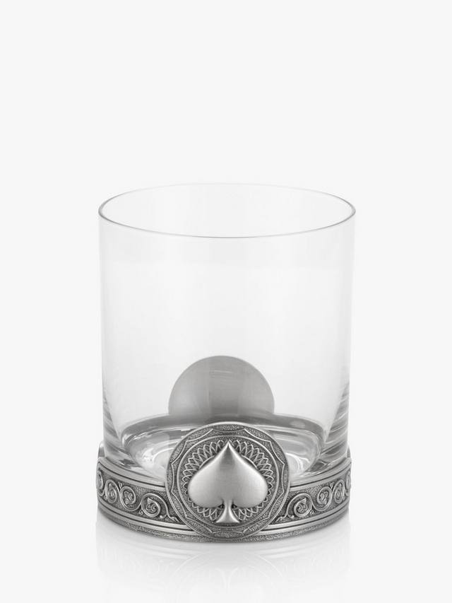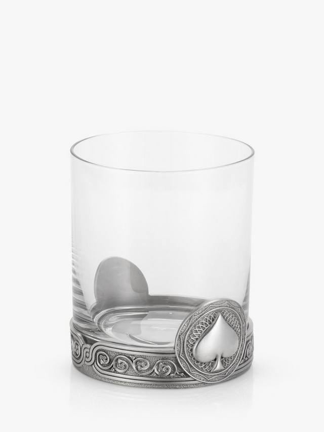 Подарочный стакан для виски или коктейля от Royal Selangor. В подарочной упаковке, с резным оловянным основанием, украшенным изображением сердца, напоминающим игральную карту.