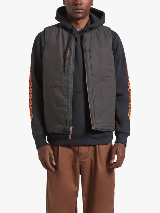 Двусторонний жилет Builders Abraham изготовлен из прочного эластичного брезента снаружи и стеганого нейлона внутри. Выверните жилет наизнанку, чтобы увидеть встроенные светоотражающие элементы для лучшей видимости на рабочем месте и за его пределами. Этот жилет имеет усиленные швы и водоотталкивающее покрытие для дополнительной защиты от непогоды.