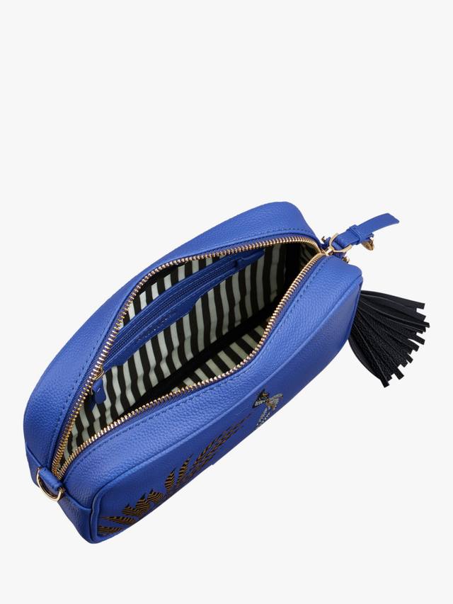 Сумка для фотоаппарата Sara Miller — идеальный аксессуар как для дня, так и для вечера. Регулируемый плечевой ремень с шевронной тесьмой и компактный размер делают её отличным спутником в походах по магазинам. Яркие веселые принты, вдохновленные природой, добавят ярких красок в ваш наряд, а декоративные детали из золотой фольги и игривая кисточка добавят блеска.