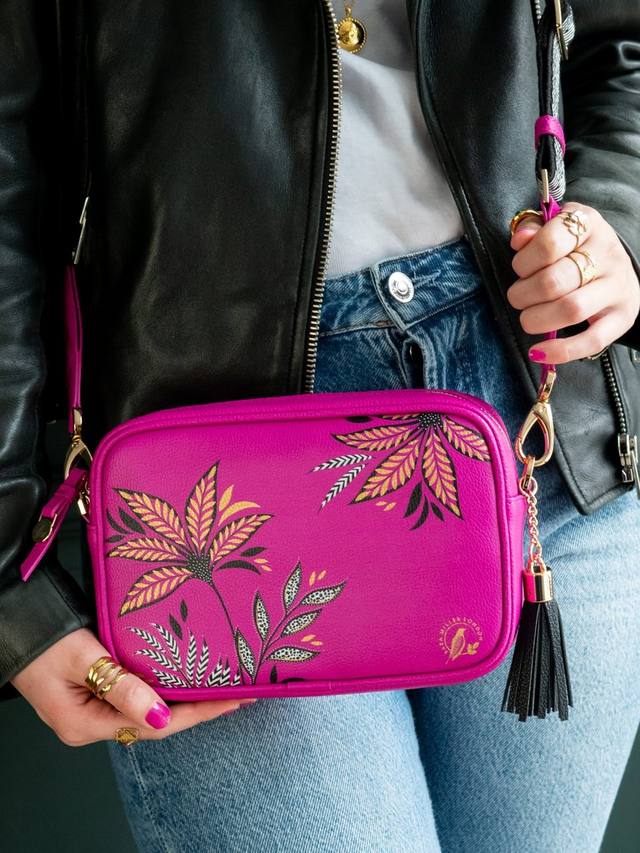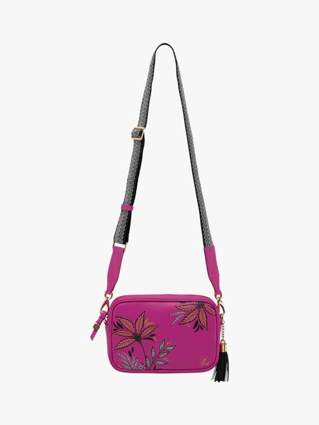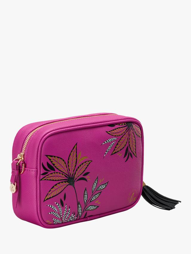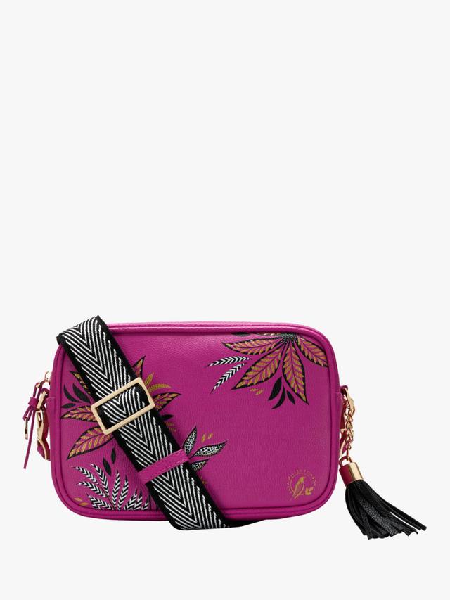 Сумка для фотоаппарата Sara Miller — идеальный аксессуар как для дня, так и для вечера. Регулируемый плечевой ремень с шевронной тесьмой и компактный размер делают её отличным спутником в походах по магазинам. Яркие веселые принты, вдохновленные природой, добавят ярких красок в ваш наряд, а декоративные детали из золотой фольги и игривая кисточка добавят блеска.