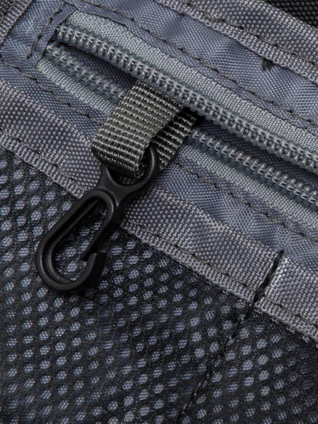 Внешняя сторона сумки застёгивается на молнию, что обеспечивает лёгкий доступ к её внутреннему пространству во время движения. Спереди расположен регулируемый эластичный карман для хранения, идеально подходящий для внешнего хранения. Регулируемое отверстие на молнии сверху обеспечивает доступ к основному отделению, в котором находятся карман на молнии, карабин для ключей и два сетчатых накладных кармана, что делает его идеальным для повседневной носки.