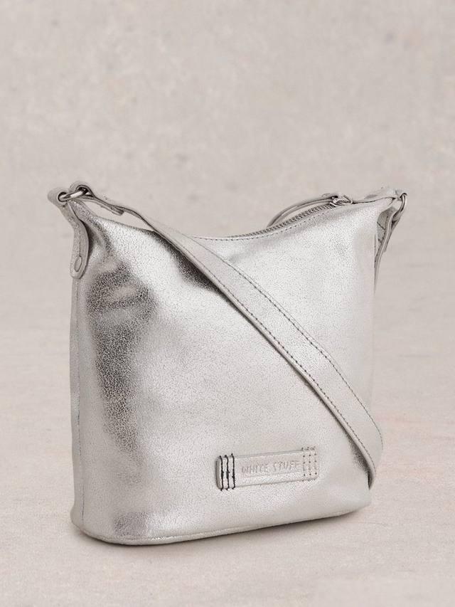 Сумка из металлизированной кожи от White Stuff с регулируемым ремешком через плечо, застежкой-молнией и внешним карманом. Подкладка с узором и внутренний карман на молнии.