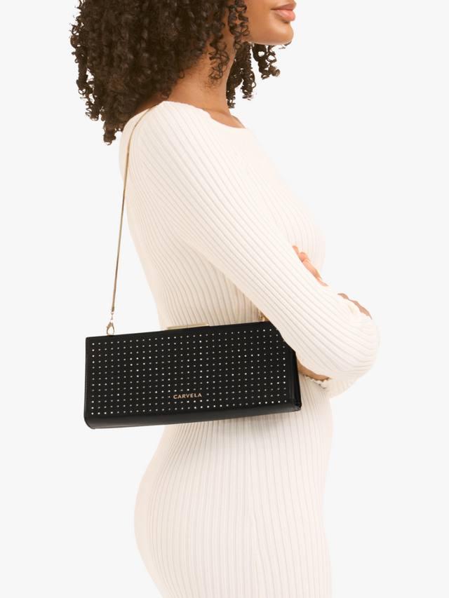 Эта сумка-клатч Alto изготовлена из искусственной кожи и украшена кристаллами-заклёпками. Застёжка – застёжка цвета оружейной стали, плечевой ремень – цепочка.