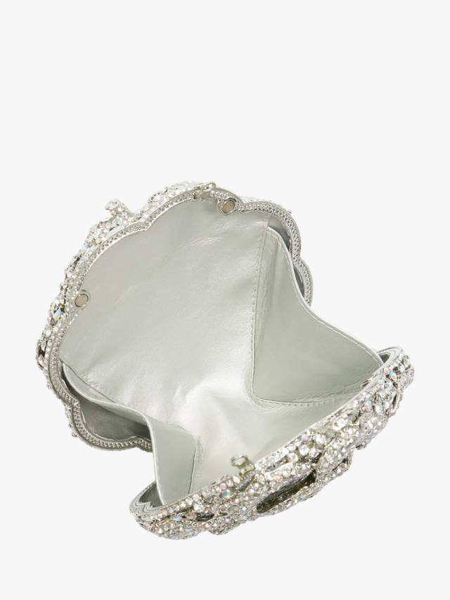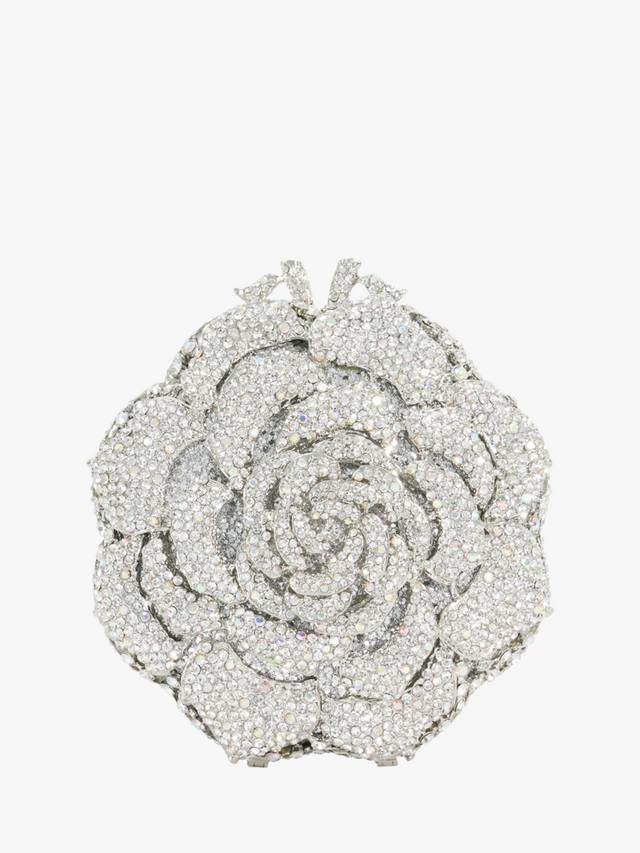 Эта прекрасная и уникальная цветочная сумочка, тщательно изготовленная и разработанная в нашем доме, сверкает гроздьями мерцающих бриллиантов в золотой оправе, воплощая романтический гламур. Твёрдый корпус открывается, открывая золотую подкладку и одно центральное отделение, а золотой ремешок-цепочка позволяет носить сумку через плечо.