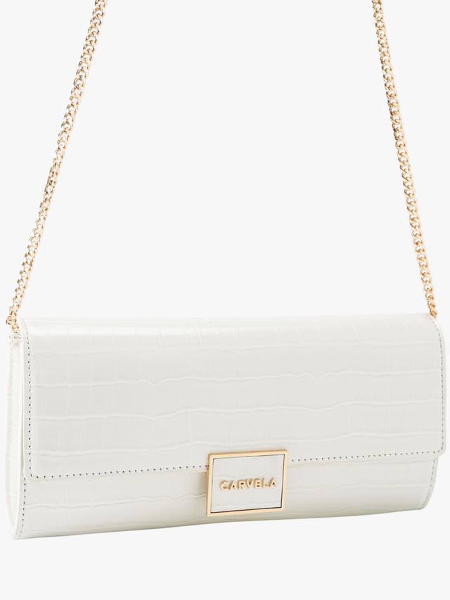Эта сумка-клатч Jessica изготовлена из чёрной кожи с тиснением под крокодила. На передней стороне сумки находится золотистая фирменная пластина.