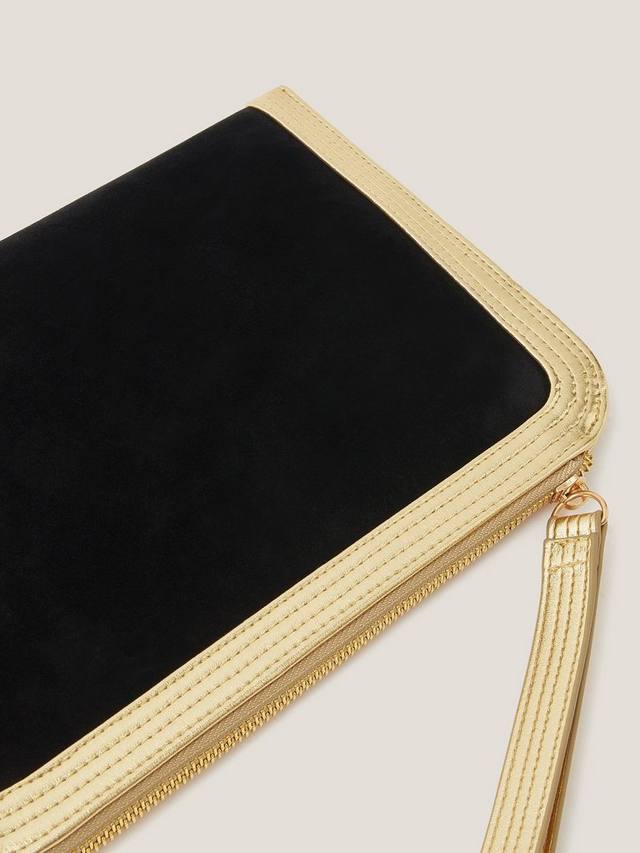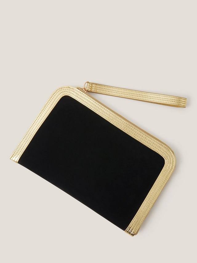 Эта сумочка из роскошной мягкой искусственной замши с металлической оправой станет идеальным дополнением к образу для торжественных мероприятий и особых случаев. Застежка-молния и ремешок на запястье.