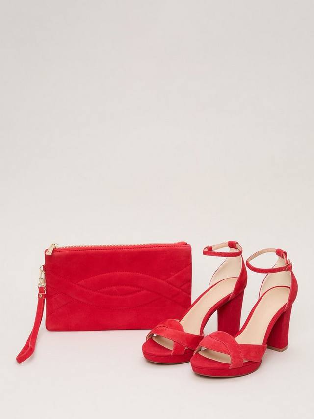 Эта замшевая сумочка-клатч добавит яркости любому вашему праздничному наряду. Идеально подходит для переноски всех необходимых вещей: можно надеть сумку через плечо или использовать тонкий ремешок на запястье. Дополните образ подходящими замшевыми туфлями на каблуке.