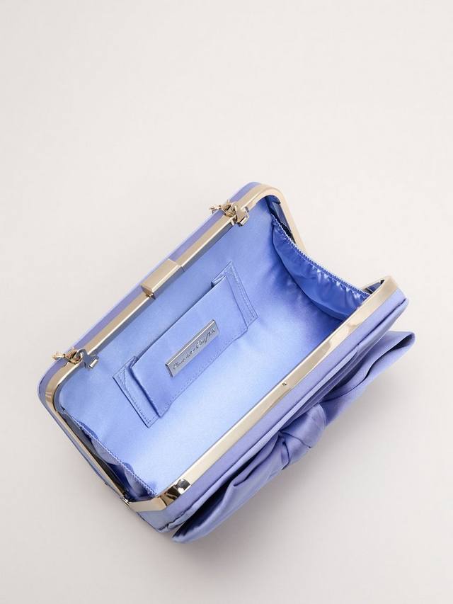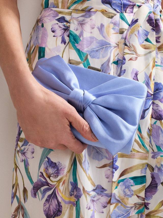 Наш клатч — элегантный аксессуар для мероприятий, украшенный эффектным атласным бантом, придающим ему нотку гламура.